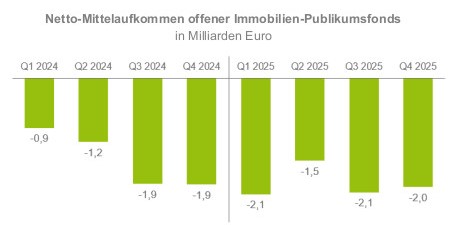 Im Neugeschäft der Publikumsfonds führen Aktienfonds die Absatzliste an. Sie erhielten netto 52,0 Mrd. Euro, davon 45,6 Mrd. Euro in Aktien-ETFs und 6,4 Mrd. Euro in aktiv gemanagte Fonds. Rentenfonds verbuchten 30,7 Mrd. Euro neue Gelder, wozu Renten-ETFs 11,5 Mrd. Euro beitrugen. Mit Blick auf die Anlageklassen dominieren Fonds, die überwiegend in Anleihen mit bis zu drei Jahren Restlaufzeit investieren (18,1 Mrd. Euro), gefolgt von Fonds mit Schwerpunkt auf Unternehmensanleihen (10,8 Mrd. Euro). Geldmarktfonds erhielten 6,6 Mrd. Euro und Mischfonds 2,3 Mrd. Euro neue Gelder. Aus Immobilienfonds flossen netto 7,7 Mrd. Euro ab. Die Rückgaben lagen zwischen 1,5 und 2,1 Mrd. Euro pro Quartal.