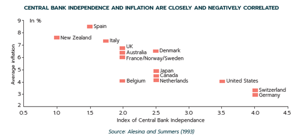 Die Vorteile einer unabhängigen Zentralbank sind allgemein anerkannt: Sie soll die Preisstabilität gewährleisten ohne das Wachstum zu beeinträchtigen, da ein klarer negativer Zusammenhang zwischen ihrer Unabhängigkeit und der Inflation besteht.
